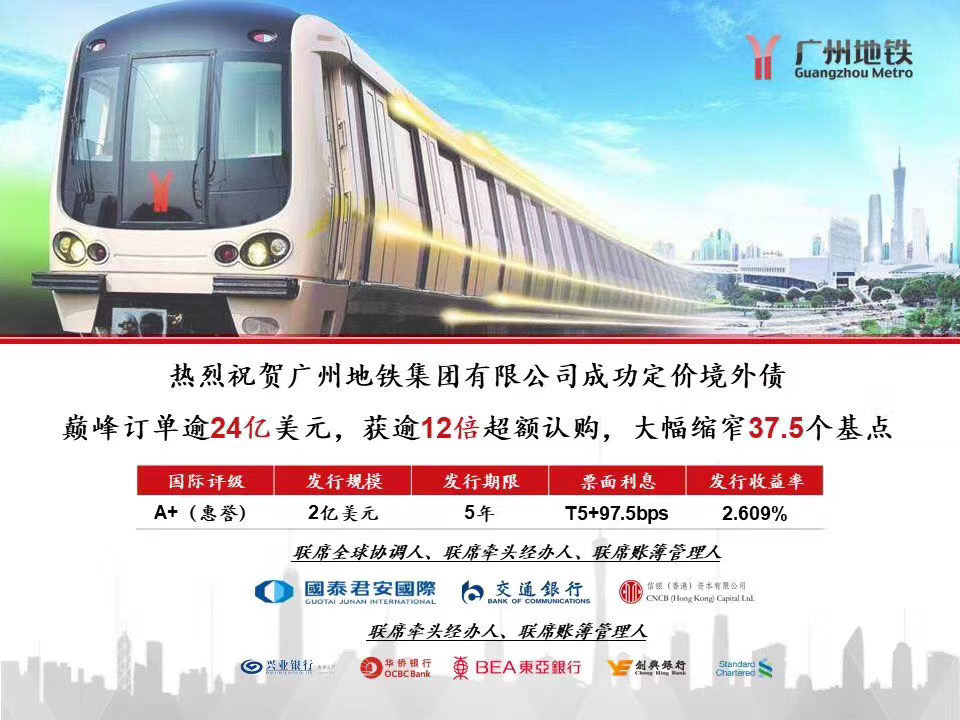 廣信君達為廣州地鐵集團提供了專業、優質、高效的法律服務,助力廣州地鐵集團成功發行境外美元債,發行利率再創新低,極大降低了企業融資成本。