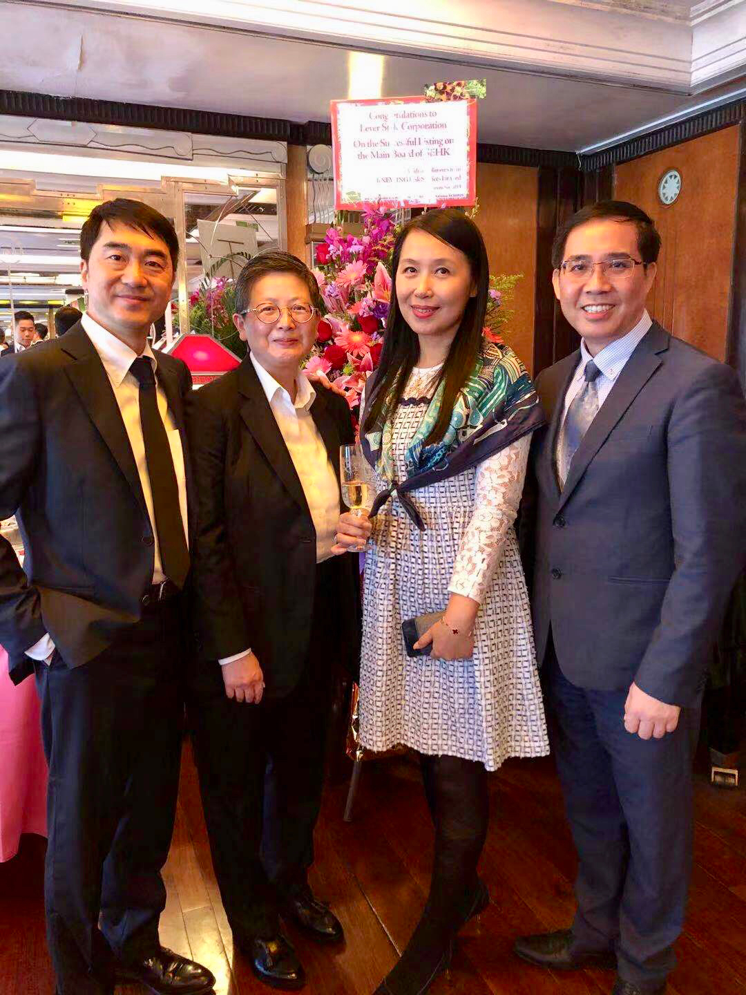 陳遠樂律師、謝捷律師出席慶功宴,左一為香港律師事務Withers的合伙人Mike Suen,左二為上市保薦人Altus Holding Limited的執行董事Jeanny Leung