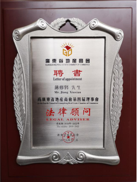 本次獲聘為廣東省地產(chǎn)商會(huì)第四屆理事會(huì)法律顧問(wèn),體現(xiàn)了廣東省地產(chǎn)商會(huì)對(duì)蔣修賢律師在該法律領(lǐng)域?qū)I(yè)性的認(rèn)可與肯定。蔣修賢律師表示,將以嚴(yán)謹(jǐn)?shù)膱?zhí)業(yè)態(tài)度和專業(yè)精神,結(jié)合豐富的房地產(chǎn)法律事務(wù)執(zhí)業(yè)經(jīng)驗(yàn),為廣東省地產(chǎn)商會(huì)提供專業(yè)、優(yōu)質(zhì)的法律服務(wù),全面保障廣東省地產(chǎn)商會(huì)法律事務(wù)合法高效的順利推進(jìn)。