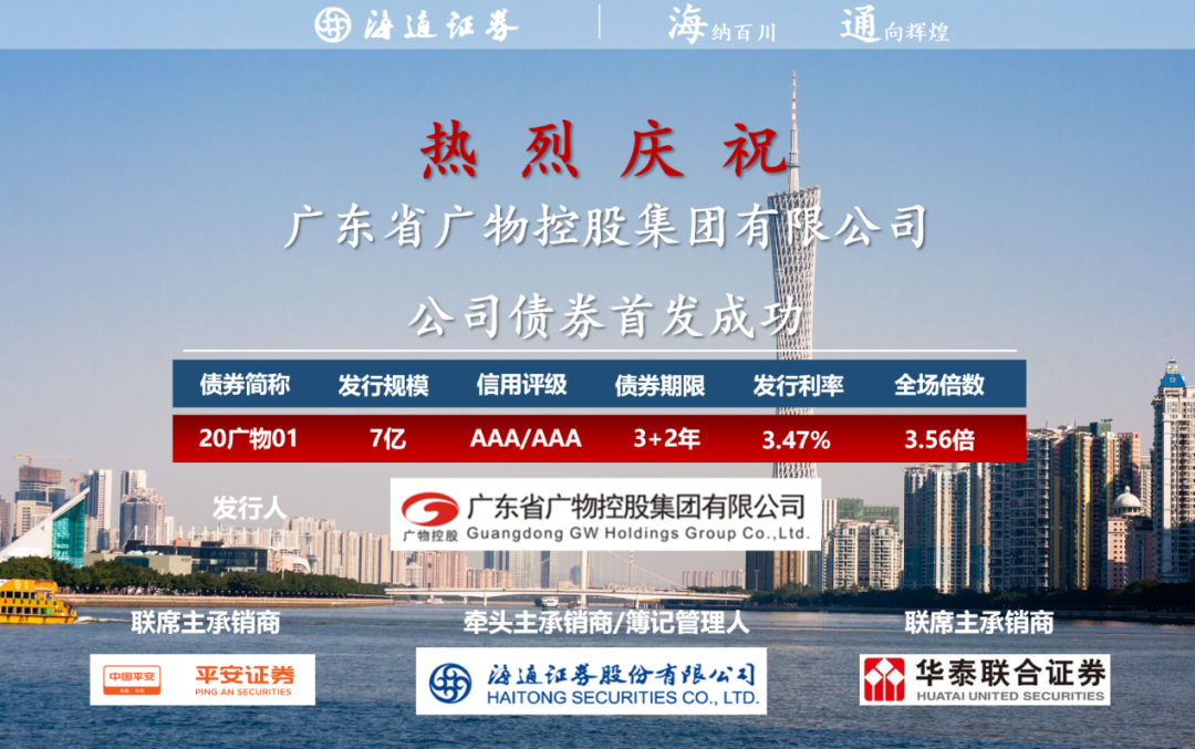 廣東省廣物控股集團有限公司(簡稱“廣物控股集團”)于2020年6月獲得中國證券監(jiān)督管理委員會注冊公開發(fā)行面值不超過80億元(含80億元)的公司債券(以下簡稱“本次小公募”)。2020年7月6日,廣物控股集團發(fā)布公告稱,本次小公募首發(fā)成功,規(guī)模7億元,期限3+2年,發(fā)行利率3.47%,全場倍數(shù)3.56倍。