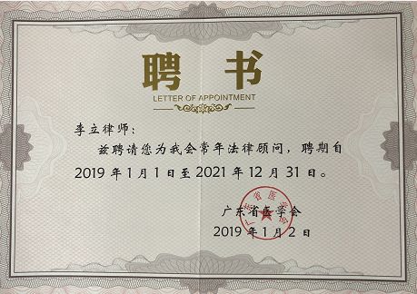 李立律師現為廣州市律師協會醫療法律專業委員會副主任。擔任廣東省醫學會、廣東省醫療行業協會、中山大學附屬第三、第五、第八醫院、廣州醫科大學附屬第一、第三醫院、呼吸疾病研究所等單位常年法律顧問。