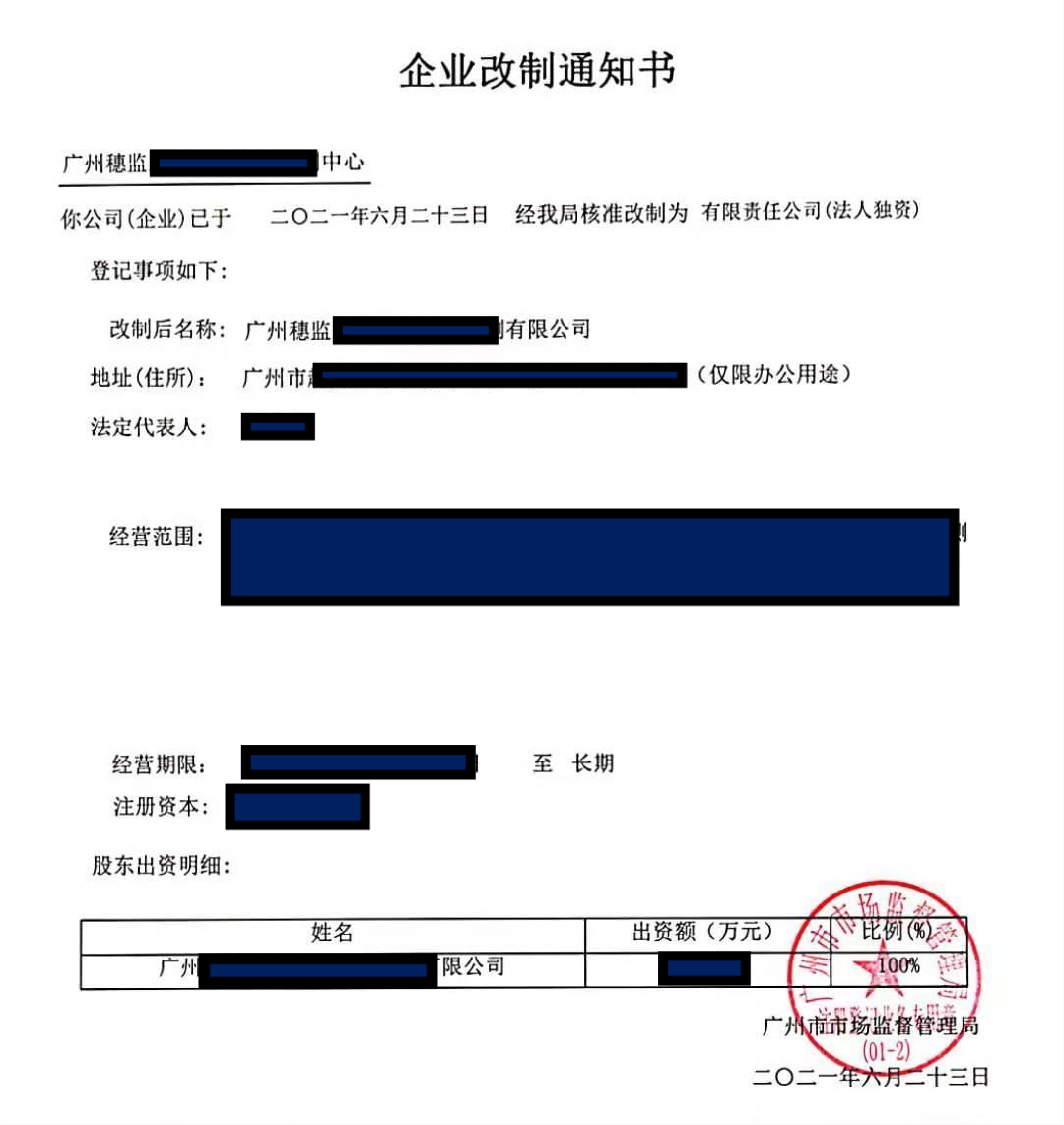 穗監中心原系廣檢集團直接出資的全民所有制企業。按照廣州市國資委的要求,穗監中心應于2021年6月30日前完成公司制改制,同時,廣檢集團因內部業務整合的需要,將對穗監中心的全部出資無償劃轉給集團下屬二級子公司廣建公司。