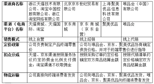 御家匯在線上經銷、線上代銷模式下,向唯品會、京東、聚美優品發貨。終端消費者在電子商務平臺上下單后,由電子商務平臺唯品會、京東、聚美優品自行向終端消費者發貨。唯品會、京東、聚美優品均系知名互聯網電子商務平臺,配合發行進行“刷單”、“刷好評”的可能性及難度較大,因此,“刷單”及“刷好評”如存在,則應主要發生在線上自營的情形下。