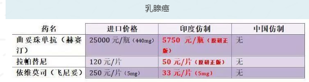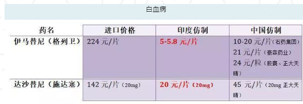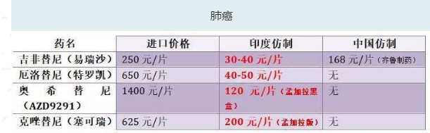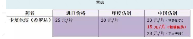 我們不妨通過下面的資料,比較下中國和印度在抗癌靶向藥物的仿制情形。