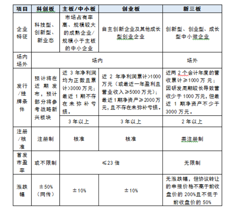 (二)科創板與主板、中小板、創業板、新三板的對比