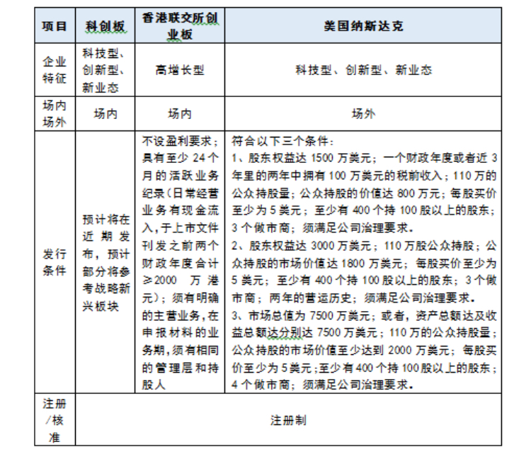 (三)科創板與香港聯交所創業板、美國納斯達克的對比
