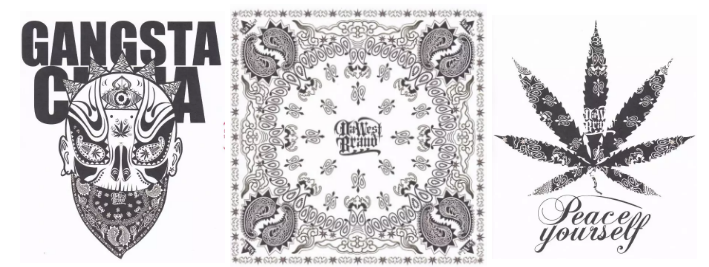 從左至右依次是:臉譜圖、方巾圖、葉子圖