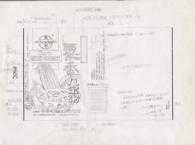 1995年,劉國銓首創(chuàng)“粟香”一詞,用勾畫方式完成“港亨粟香八寶粥”的裝潢設(shè)計,將之作為易拉罐裝玉米八寶粥的產(chǎn)品包裝裝潢,經(jīng)過二十多年的發(fā)展,“港亨粟香八寶粥”具有較高的知名度,暢銷廣西、廣東等地。