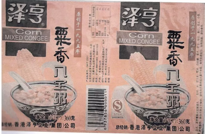 圖為被訴侵權(quán)的澤亨“粟香八寶粥”包裝裝潢