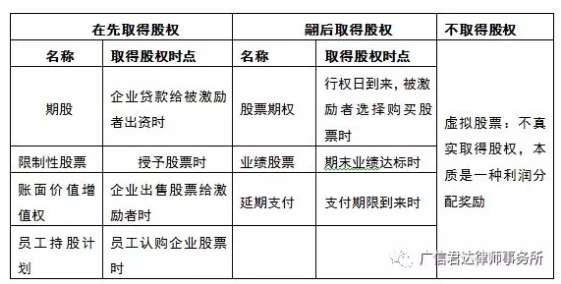 二、以“股權(quán)取得”為中心對股權(quán)激勵工具再分類